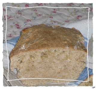 Deciros que el pan lo he hecho en un molde para cakes, en concreto uno de silicona que me funciona muy bien, la masa me quedaba un pelo húmeda como para hacer con ella una hogaza, así que al molde... he visto que también se puede hacer en una especie de olla o sartén que los irlandeses meten tapada en el horno para que en él se haga el pan... Eso supongo que ya, a gustos.