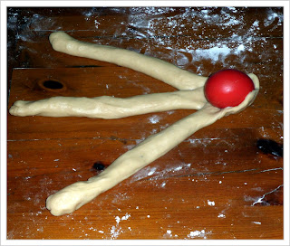 13. Antes de meter las muñecas en el horno las pincelamos con huevo batido diluido en una cucharada de agua... para que luego las muñecas tengan ese aspecto brillante.